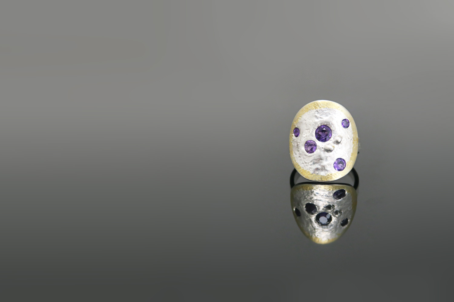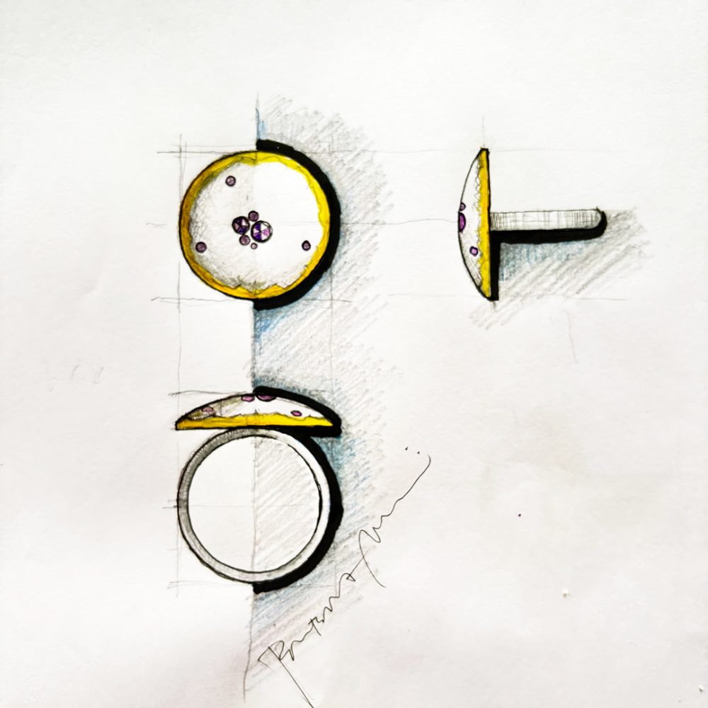 Ko sem dobila sporočilo, da je za prstan primeren ametist, sem pomislila: »Ampak res, z ametistom še nisem ustvarjala nakita. Nikoli se ni javil in želel biti del kakšnega kosa.«